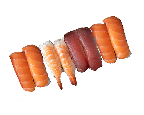2 sushis crevette, 2 sushis thon, 4 sushis saumon