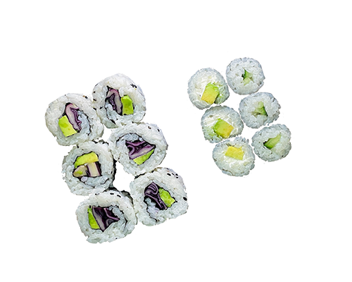 3 makis avocat cheese, 3 makis concombre, 6 california rolls chou avocat+ 1 accompagnement inclus