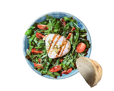 Roquette, burrata 180g, tomates cerises, crème de balsamique, basilic