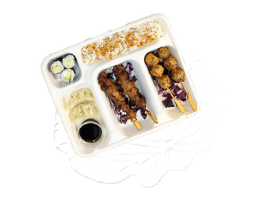 2 brochettes yakitori, 2 brochettes tsukune, 3 makis avocat cheese,...